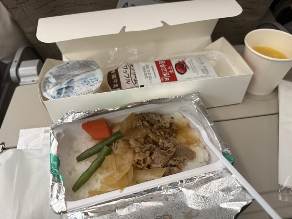 成田仁川線は飛行時間が短いため、機内食が出てくるのは意外でした。
