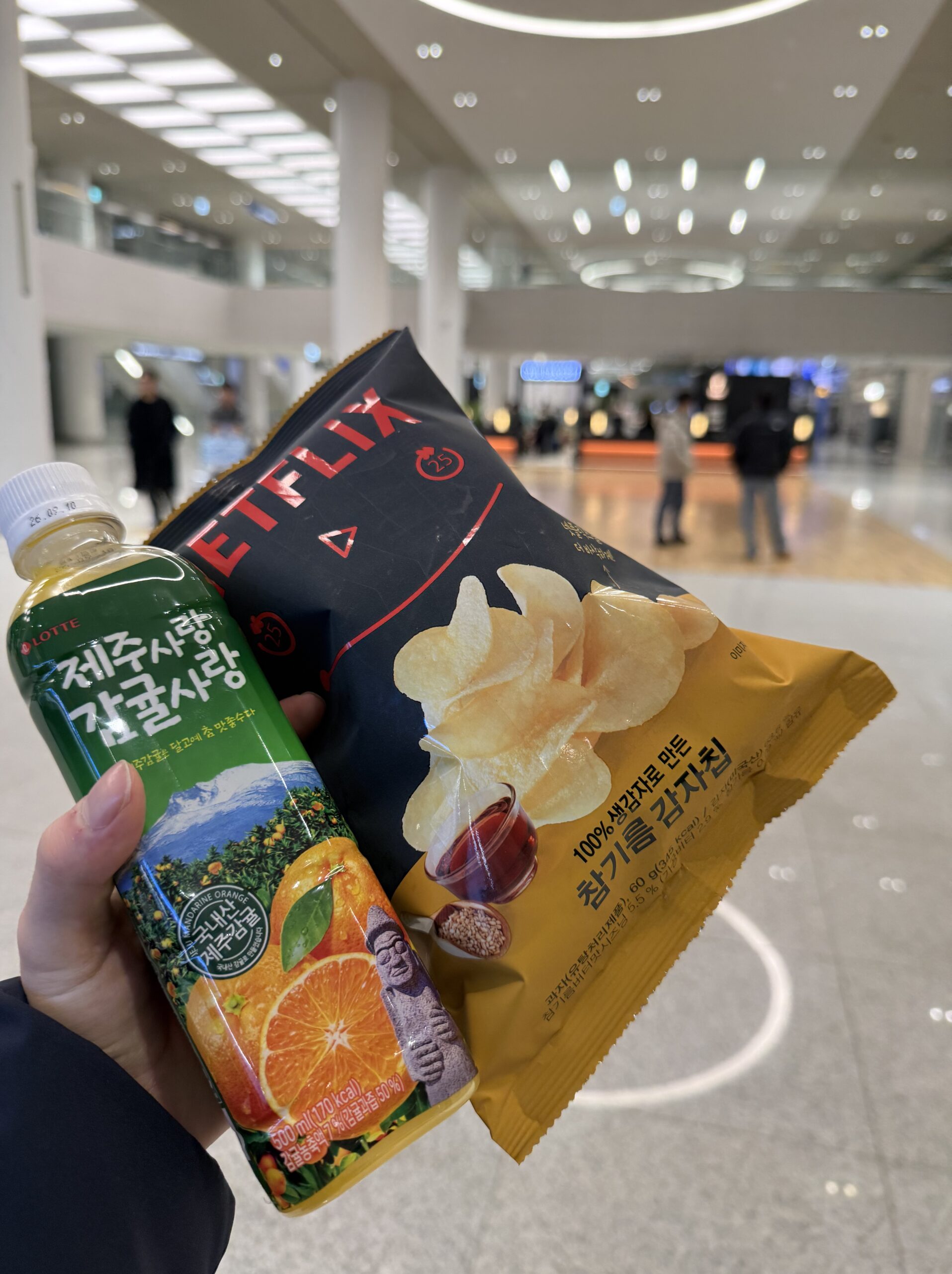 空港内のコンビニでは、日本で売られていない商品、日本商品の韓国バージョンなど、初めて見るものがたくさんありました。