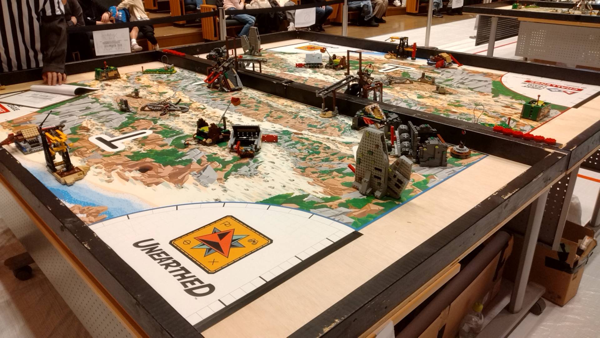 競技は、実際にロボットを用いてミッションをクリアしてポイントを得るロボットゲームと、テーマに沿った自身のチームの研究やロボットについてのプレゼンテーションの二つがあります。FLLにもFTCと同様にテーマが設定されており、今回のテーマは『DECODE』です。ロボットゲームは、テーマに関連したものとなります。
