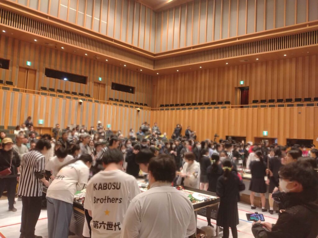 ↑このような広いホールで一気に行われます。一試合二分半で、五分ごとに入れ換えて試合が行われます。